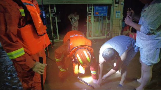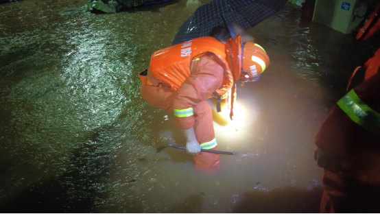 00时30分接指挥中心调度称长沙县泉塘小区涨水困人,泉塘站立即出动1车7人赶往现场,到达现场经侦查无被困人员,但是路上积水严重,随后消防救援人员到达位置后首先对积水路段进行封锁、侦查,发现积水道路两边为商铺及村民住宅楼,若不及时排涝,将导致该区域商铺、住宅楼进水以及行驶过该路段的车辆产生误判从而发生危险,严重影响居民的财产安全与出行安全。及时解除了沿路商铺进水隐患,同时也为居民的道路出行安全提供了保障。根据现场情况,消防救援人员寻找下水道管道井,立即组织进行排水,并在下水管道井设置提示,防止坠井。00时50分,水位下降至安全范围后收队。