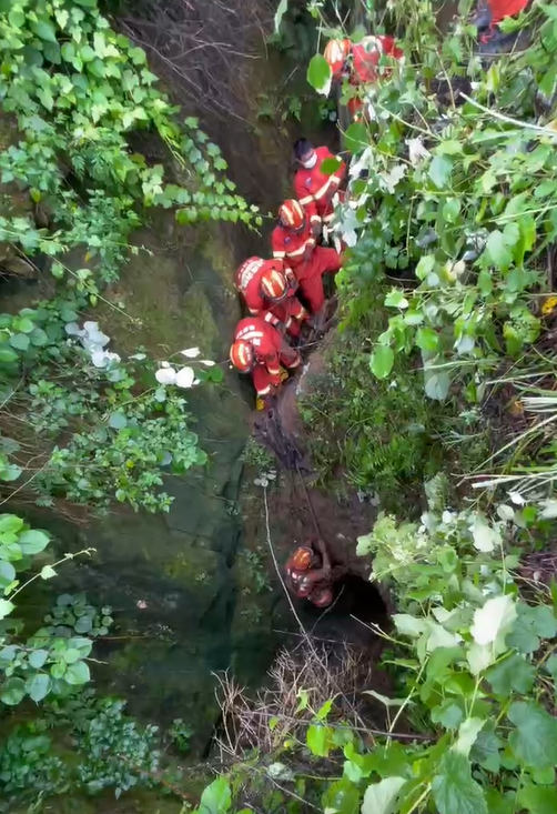 6月5日上午11时45分,郴州桂阳县雷坪镇大顺窿一男子在上山找牛的过程中不慎坠入一处40多米深的洞穴中。接到报警后,龙潭消防救援站立即出动1车8人赶赴现场处置,经过约2个小时的救援成功救出该男子。