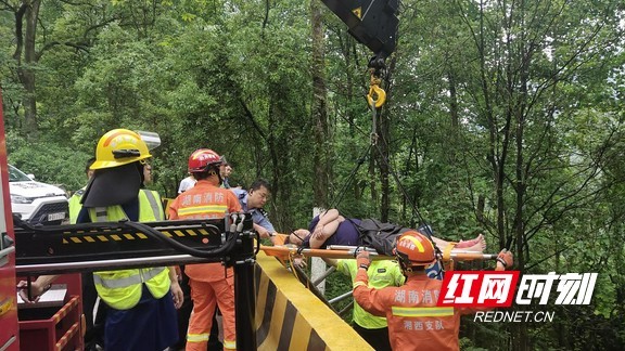 女子不慎摔到矮寨盘山公路山崖边 吉首消防紧急救援