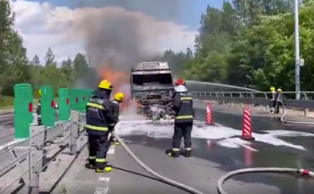 十万火急!油罐车高速自燃,还满载30吨焦油