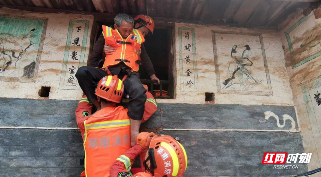 七旬老夫妻因洪水被困家中 桂阳消防“人梯”搭建“生命通道”