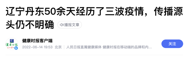 今年6月14日,《健康时报》客户端曾刊发了一篇《辽宁丹东50余天经历了三波疫情,传播源头仍不明确》的文章。