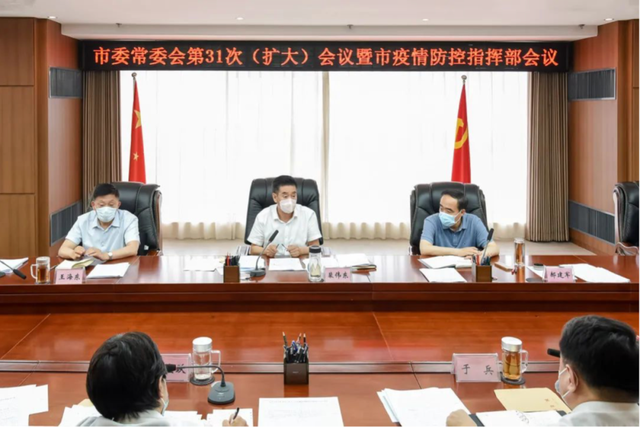 6月21日,丹东市召开市委常委会(扩大)会议暨市疫情防控指挥部会议。市委书记裴伟东主持会议并讲话,市长郝建军作工作部署。