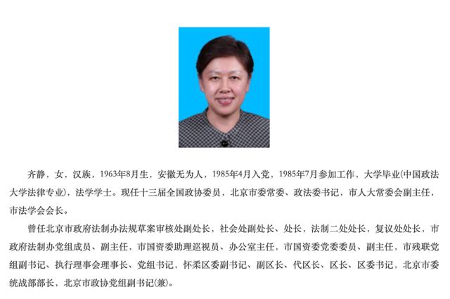 值得一提的是,目前,全国省级政法委书记中,女性政法委书记共两人,除了肖菊华之外,还有1963年8月出生的北京市委常委、政法委书记齐静。