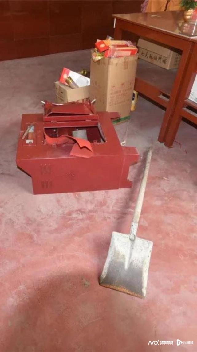 办案民警经过仔细勘查现场发现,嫌疑人破坏门锁进入寺庙后,使用工具暴力破坏功德箱,并将里面放置的现金盗走。