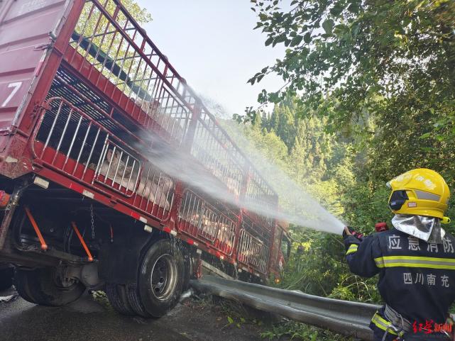 6月29日7时许,四川南充蓬安县罗家镇往大深南海方向的318国道上发生一起交通事故,一辆满载生猪的货车冲出道路,由于天气炎热,阳光暴晒,货车上的“二师兄”出现高温中暑症状……