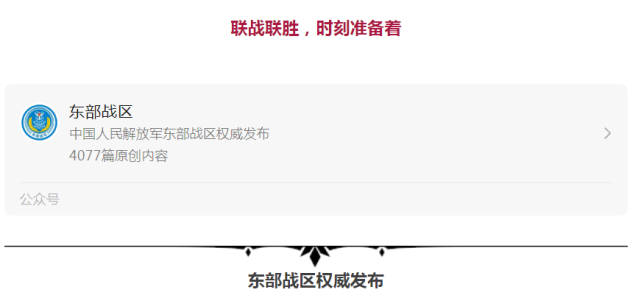 7月30日,东部战区微信公号刊发题为《东海某海域,装载与输送演练打响》文章。政知见注意到,文章结尾以加粗红字标明:“联战联胜,时刻准备着”。而该公号推发的其他文章结尾,未见类似表述和排版。