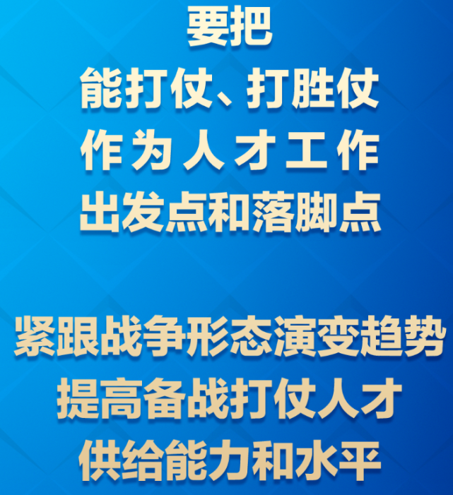 习近平指出,世界进入新的动荡变革期,我国国家安全形势不稳定性不确定性增大。未来5年,我军建设的中心任务就是实现建军一百年奋斗目标。要增强忧患意识、责任意识、进取意识,全面加强我军人才工作。
