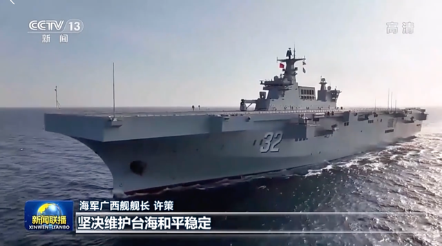 海军广西舰舰长许策说,“主席在讲话中提到,要大力推进国防和军队现代化建设,坚决维护台海和平稳定,广西舰作为海军转型建设的标志性装备,两栖作战力量体系的核心,全舰官兵正以只争朝夕、时不我待、越是艰险越向前的工作状态,投身全课目训练,苦练打赢本领,坚决维护国家统一和海洋权益,做到召之即来、来之能战、战之必胜!”