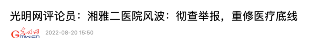 8月20日,光明网发表评论称,湘雅二医院“存在不规范行为”的初步回应,基本证实了网上的举报内容并不是空穴来风。