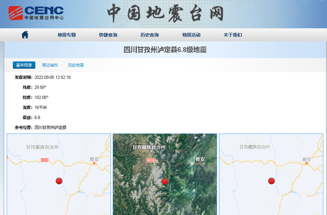 9月5日12时52分,四川省甘孜州泸定县发生6.8级地震,震源深度16公里。