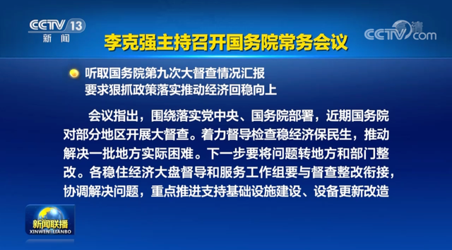 9月22日《新闻联播》报道,9月21日,国务院总理李克强主持召开国务院常务会议,这次会议再度提到了“稳住经济大盘督导和服务工作组”。