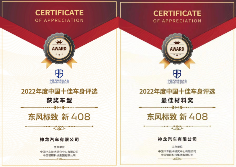 新408能够一举斩获“2022中国十佳车身”与“最佳材料”两项大奖,离不开神龙汽车打造“良心车、安全车、放心车”的品质传承。