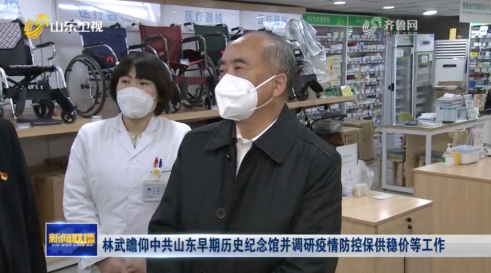 《大众日报》报道,离开纪念馆后,林武来到附近的市民药店,详细了解退烧药、抗原检测试剂、口罩等销售和供应情况。