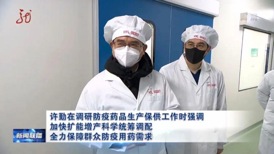 12月30日,黑龙江省委书记许勤到哈尔滨市部分医药生产企业调研。在哈药集团制药六厂,许勤强调,全省制药企业要开足马力、增产保供,布洛芬和对乙酰氨基酚片每日产量再增加14万盒和10万盒以上,同时围绕退热、抗病毒等重点药品,全力保产能、保原料、保人力、保质量、保安全。要在防疫大考中履行社会责任、体现企业担当。