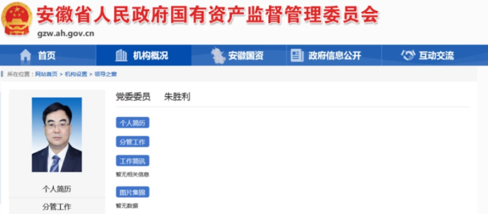 新任安徽省国资委党委委员、提名副主任的朱胜利,出生于1972年8月,曾先后担任合肥市人民政府副秘书长,市投资促进局局长,合肥市发展和改革委员会党组书记。