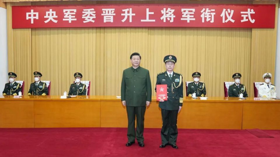 据新华社报道,1月18日,中央军委晋升上将军衔仪式在北京八一大楼举行。中央军委主席习近平向晋升上将军衔的中部战区司令员黄铭颁发命令状。
