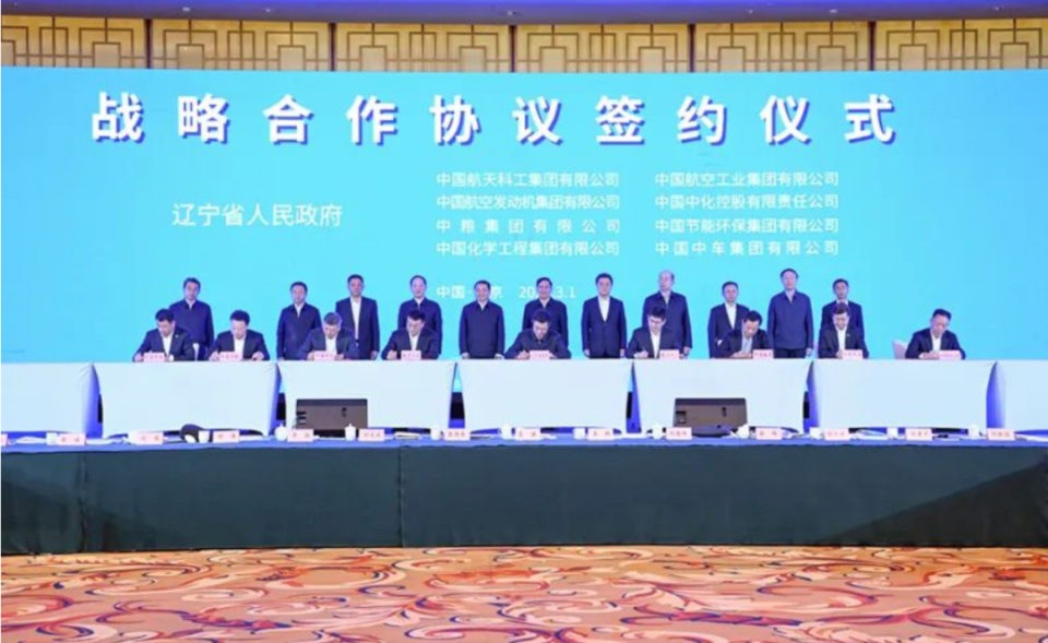 座谈会现场,辽宁省政府与航天科工、航空工业集团、中国航发、中国中化、中粮集团、中国节能、中国化学工程、中国中车集团等8家央企签署了战略合作协议。