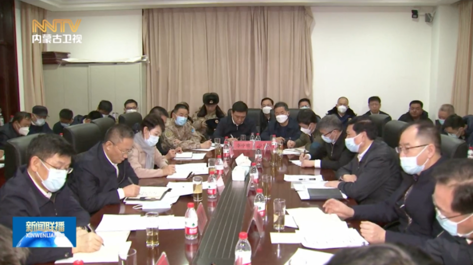 2月23日凌晨,内蒙古自治区党委书记孙绍骋、自治区主席王莉霞在事故煤矿办公区召开现场办公会。