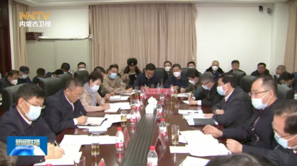 2月23日凌晨,内蒙古自治区党委书记孙绍骋、自治区主席王莉霞在事故煤矿办公区召开现场办公会。