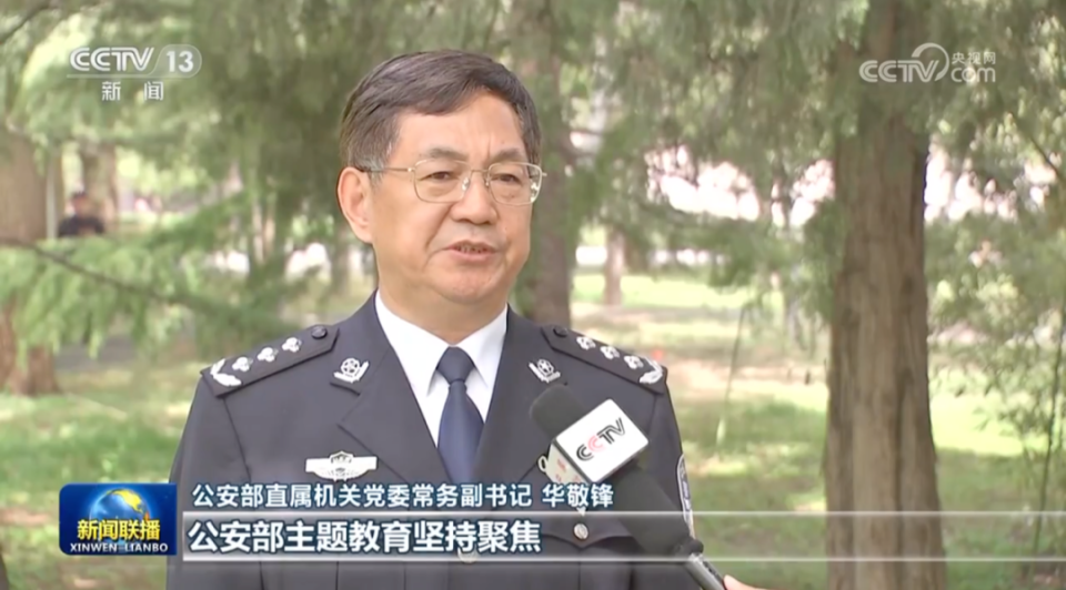 在昨天的《新闻联播》中,公安部直属机关党委常务副书记华敬锋也出镜了。