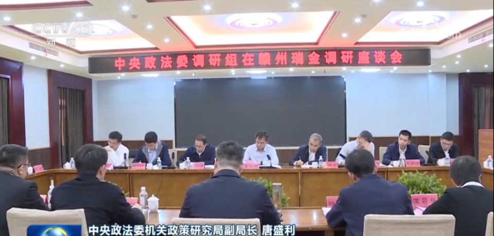 《新闻联播》披露了中央政法委调研组一行在赣州瑞金调研的现场画面。