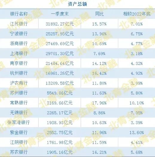 2022年底,江苏银行资产总额达2.98万亿元,超过了上海银行资产总额2.87万亿元,直至今年一季报出炉,江苏银行总资产突破3万亿大关,以3.19万亿元的规模超车上海银行,成为仅次于北京银行的上市城农商行“二把手”、“包邮区一哥”之位。