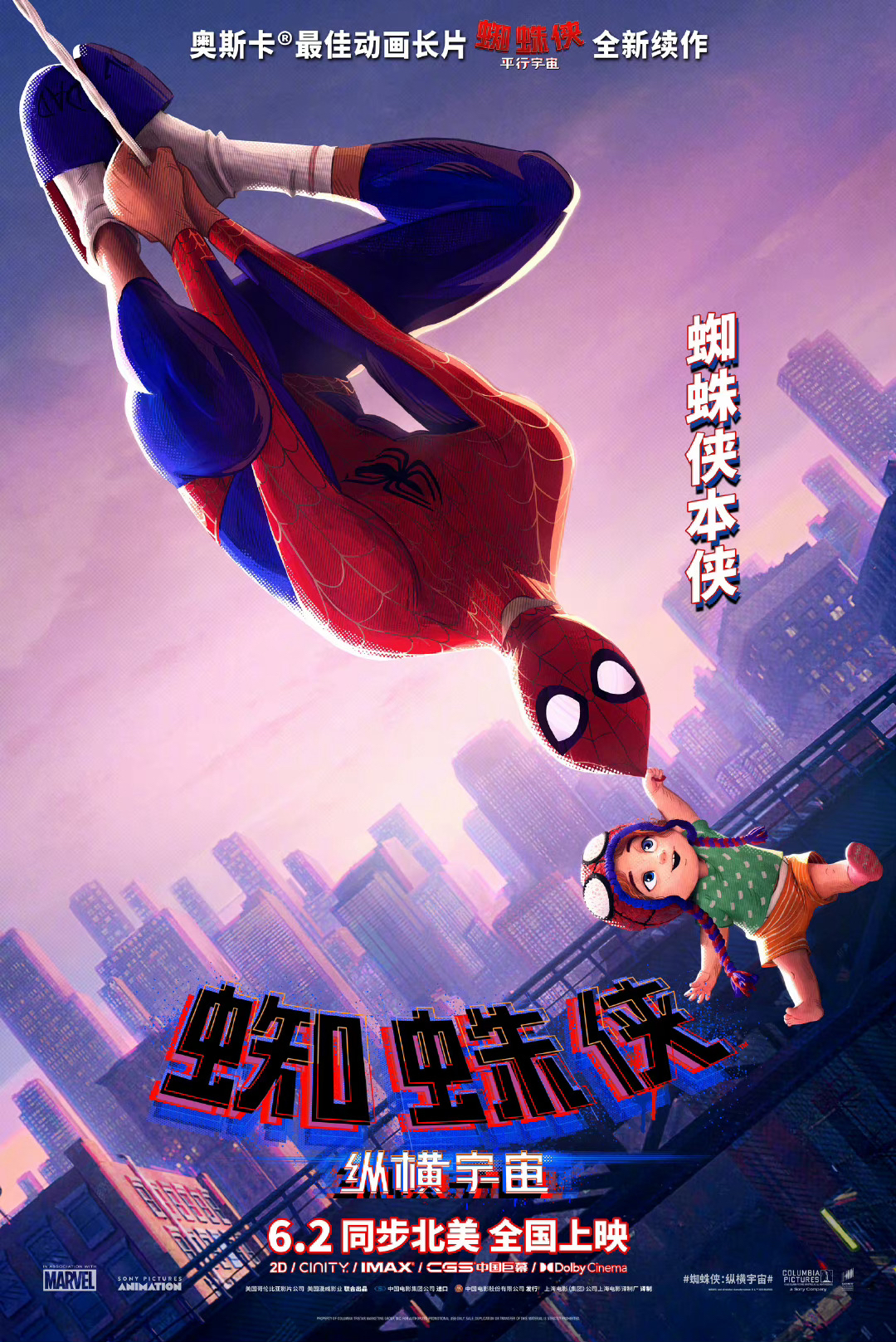 漫威真人电影《银河护卫队3》还在热映,又一个超级英雄蜘蛛侠要登场了,不过,这次不是真人版,动画电影《蜘蛛侠:纵横宇宙》将于6月2日登陆全国大银幕,与北美同步上映。