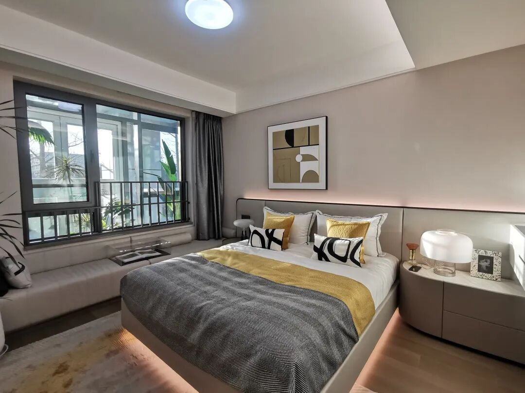 从现场样板间可以看到,富华里99㎡的窗台高度较低,后期可加装柜体,开窗面积大,主卧空间也较为宽阔,空间舒适感强。