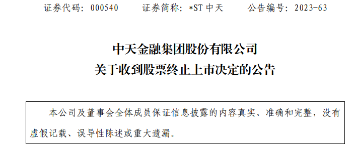 6月15日晚间,*ST宏图(600122)、*ST中天(000540)、*ST弘高(002504)、*ST紫鑫(002118)发布终止上市相关公告,均属面值退市情形,其中*ST宏图、*ST中天分别收到上交所、深交所对公司股票终止上市决定书;*ST弘高收到终止上市事先告知书;*ST紫鑫已连续 20个交易日收盘价低于面值,将于6月16日停牌。截至今年一季度末,前述四家公司股东户数累计达36.89万户。