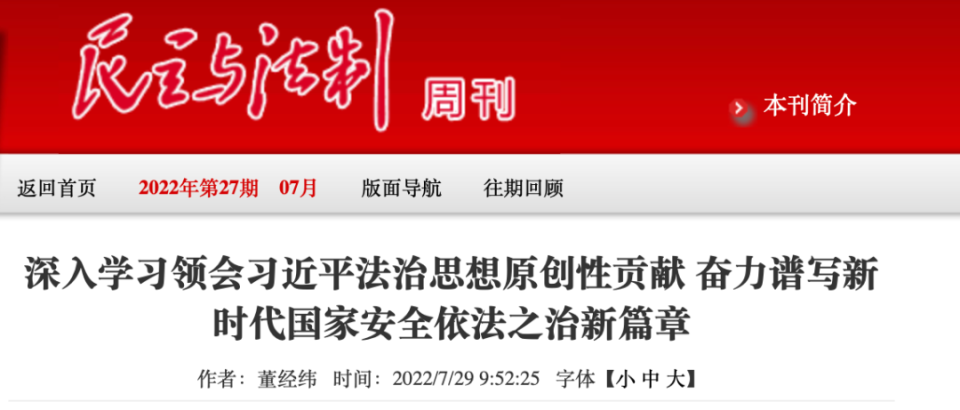 2022年7月,《民主与法制》周刊刊发了董经纬署名文章。