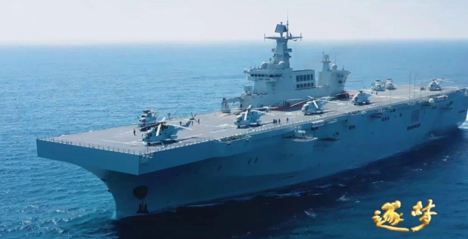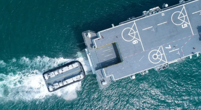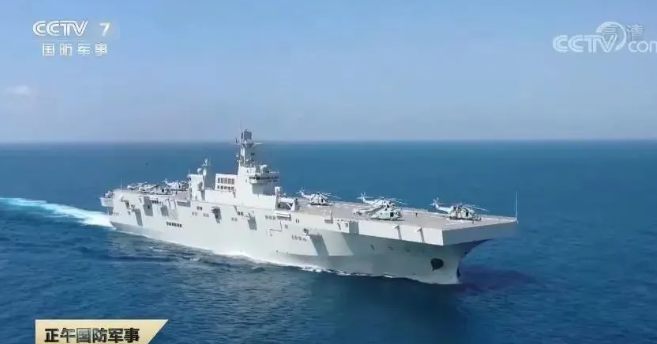 资料显示,075两栖攻击舰是中国最新一代两栖作战的武器装备,排水量约4万吨,配备了直通甲板和坞舱,可搭载直升机、两栖气垫登陆艇、两栖战车等两栖作战装备,具备立体登陆作战能力。