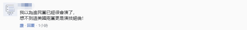 还有岛内网民评论,“我以为国民党已经很会演了,想不到这美国两党更是演技绝伦!”↓