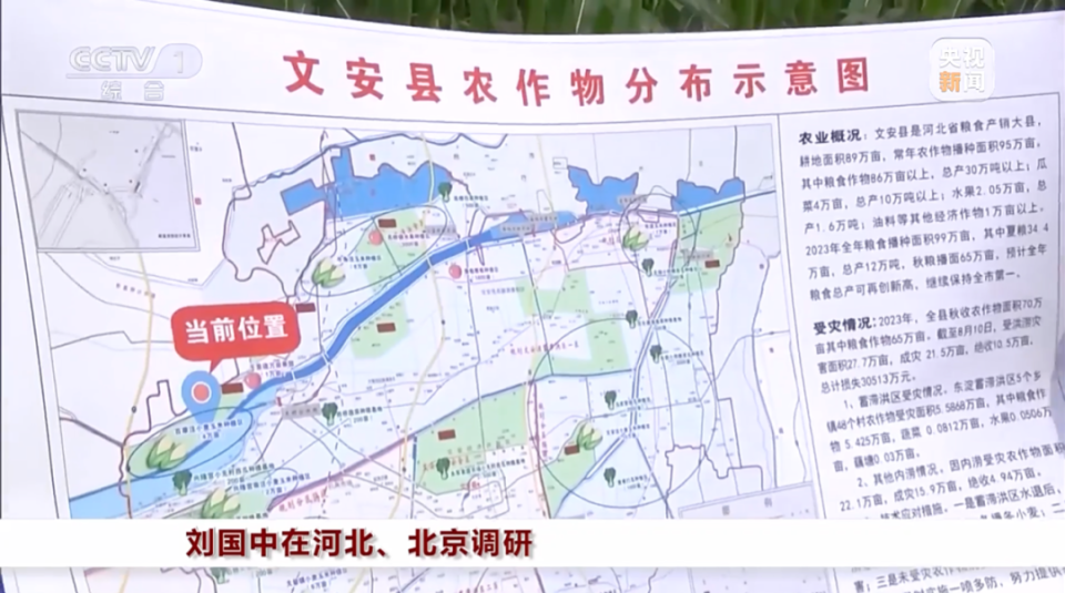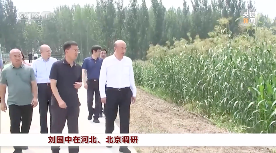 新闻画面显示,刘国中现场了解了河北省文安县农作物受灾的情况。