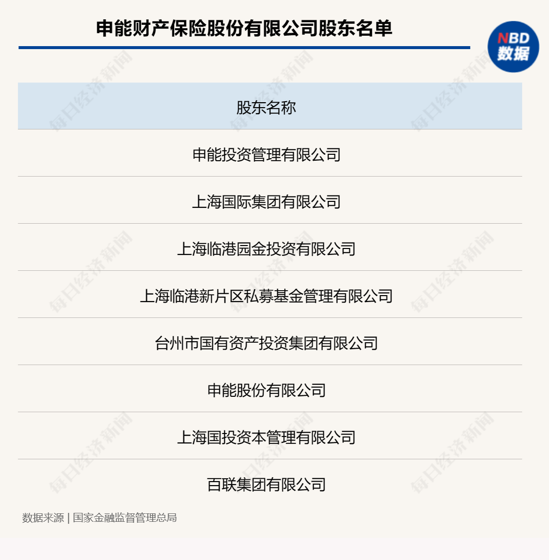 据悉,申能财险注册资本达100亿元。根据批复文件显示,申能财险8家股东单位分别为申能投资管理有限公司、上海国际集团有限公司、上海临港园金投资有限公司、上海临港新片区私募基金管理有限公司、台州市国有资产投资集团有限公司、申能股份有限公司、上海国投资本管理有限公司、百联集团有限公司。