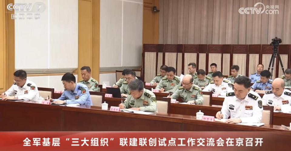 从视频画面中可以看出,与会人员分别来自海军、陆军、空军、火箭军多个军种。这也从侧面证实,基层“三大组织”联建联创试点工作已经在全军多个军种推开。
