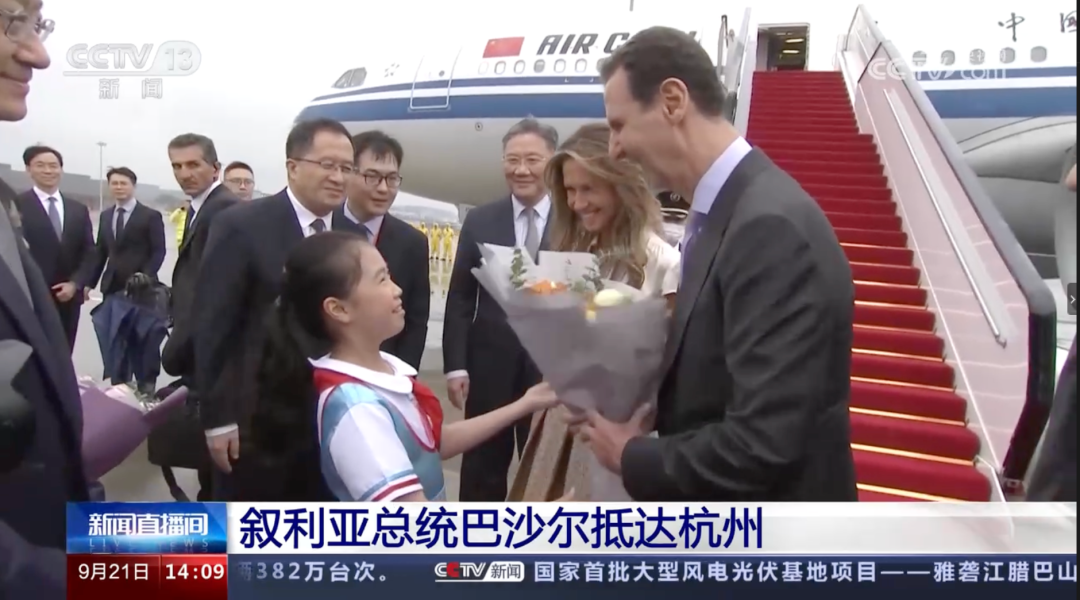 9月21日下午,巴沙尔抵达浙江省杭州市。从央视报道的画面中可以看到,巴沙尔乘坐的是中国国航飞机。