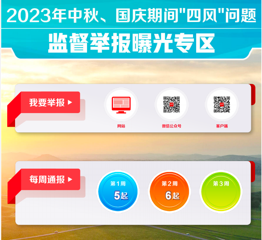 今年中秋、国庆假期之前,中央纪委国家监委网站推出了“2023年中秋、国庆期间‘四风’问题监督举报曝光专区”。