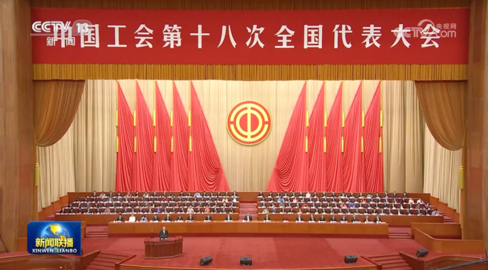 今天《新闻联播》逾6分钟的头条,是工会十八大。