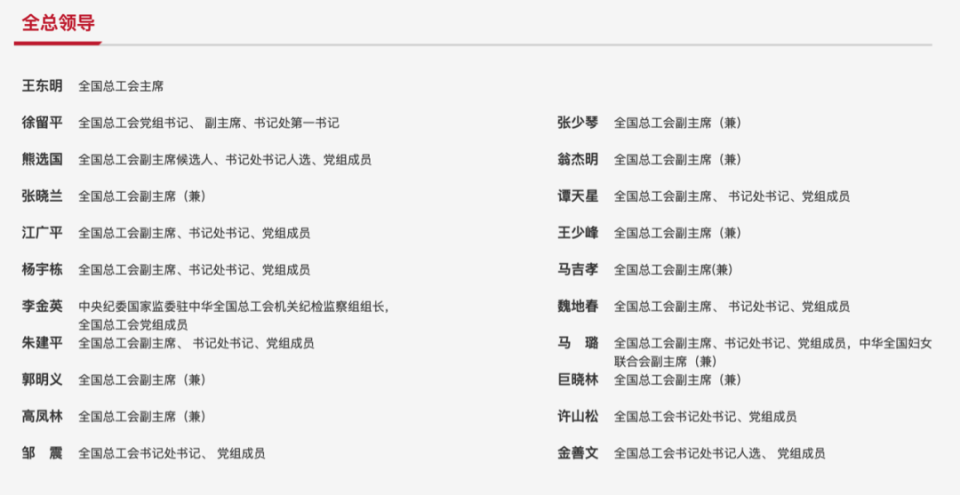 另据全总官网显示,中华全国总工会党组书记、副主席、书记处第一书记是徐留平。