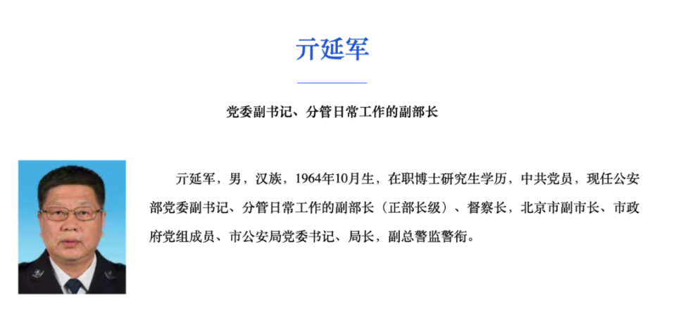 2020年4月,亓延军出任北京市副市长、市公安局局长。