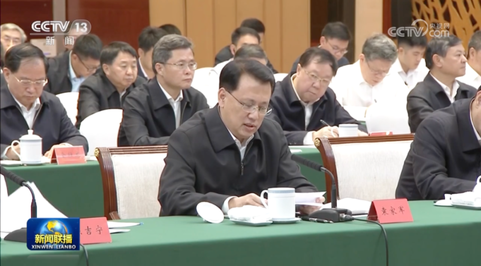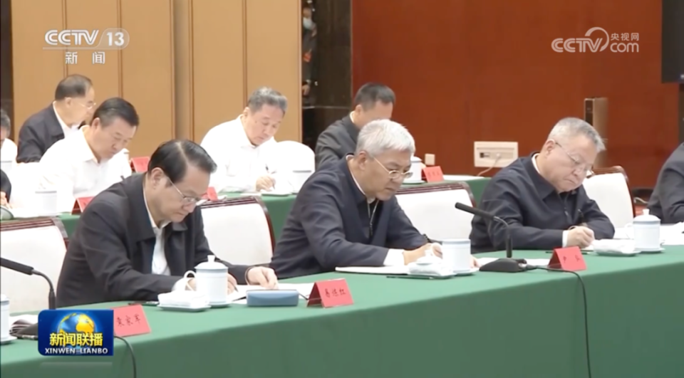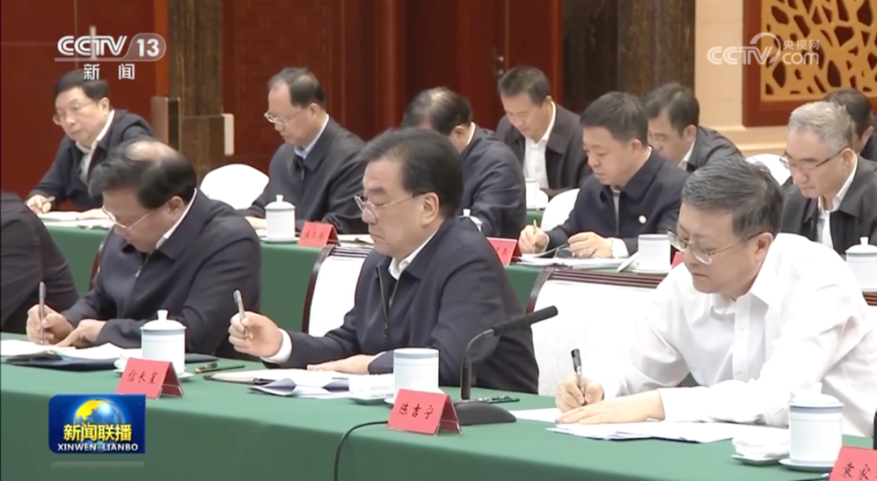 画面显示,江苏省委书记信长星、安徽省委书记韩俊、湖北省委书记王蒙徽、四川省委书记王晓晖、湖南省委书记沈晓明、浙江省委书记易炼红、云南省委书记王宁、贵州省委书记徐麟等都在现场。