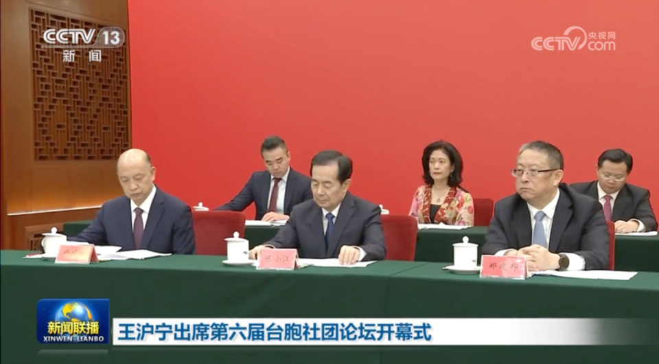 出席第六届台胞社团论坛开幕式的是中共中央政治局常委、全国政协主席王沪宁,这也是王沪宁首次出席这一论坛。