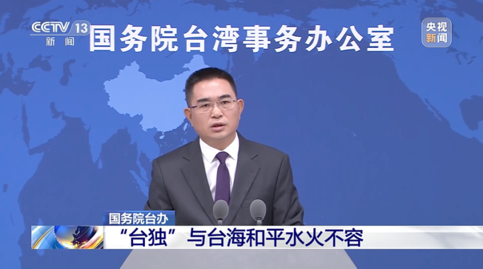 在当日的国台办新闻发布会上,国务院台办发言人陈斌华说,民进党当局2016年上台以来,否认“九二共识”,不断勾连外部势力进行谋“独”挑衅,破坏两岸同属一中的事实,阻挠两岸交流合作,是台海现状的真正破坏者,是台海和平稳定的最大乱源。