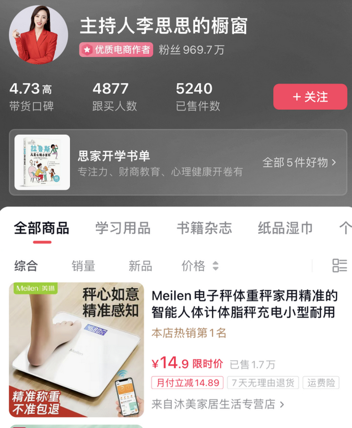10月9日,主持人李思思通过个人社交账号证实消息,宣布离开奋斗了13年的央视。随即有网友关注到,在某宝直播出现“疑似李思思淘宝直播账户”,猜测她很可能会转型成为直播带货主播。
