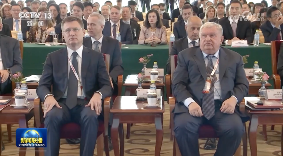 俄罗斯总统能源发展战略和生态安全委员会秘书长、俄罗斯石油公司总裁谢钦宣读俄罗斯总统普京贺信并致辞,俄罗斯联邦政府副总理诺瓦克致辞。