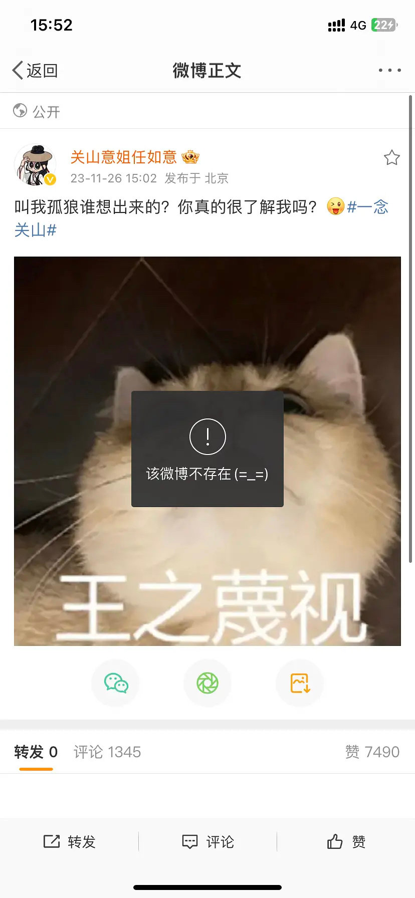 11月28日,刘诗诗新剧《一念关山》即将上线网播,这部剧从定档开始就不太平,去年9月中旬发布定档海报时,女主角刘诗诗粉丝就曾因为定档群像海报中女主角的图像大小不够突出和官宣微博名字排序和男主刘宇宁放在了同一行而表示了强烈不满。11月26日,在这部剧上线前最后预热的几天,《一念关山》女主角任如意的官方角色号“关山意姐任如意”发表了一条微博,内容为“叫我孤狼谁想出来的?你真的很了解我吗?”并配上了一个俏皮的表情包。这条微博在女主的粉丝群体中炸开了锅,到底有没有必要开一个角色号来专门做宣传也引起了“吃瓜”网友们的讨论。