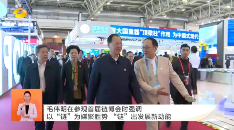 多个省份组团参加了链博会。11月28日下午,湖南省省长毛伟明率团参观首届中国国际供应链促进博览会展馆。