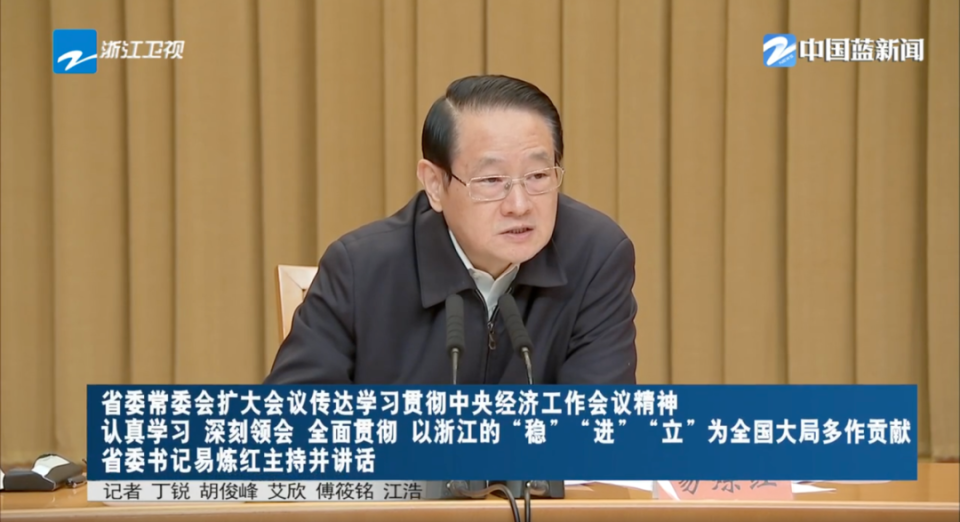 12月13日下午,浙江省委常委会召开扩大会议,易炼红主持会议并讲话。