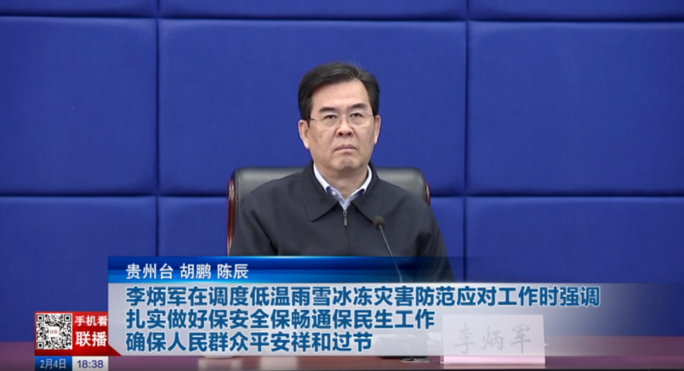 2月4日,贵州省省长李炳军前往省应急管理厅,视频调度全省低温雨雪冰冻灾害防范应对工作。